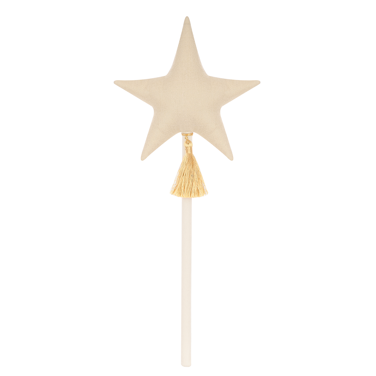 The wand has been carefully crafted from cotton covered  and a pine stick. The star is sewn to the stick and decorated with a beautiful subtle tassel.