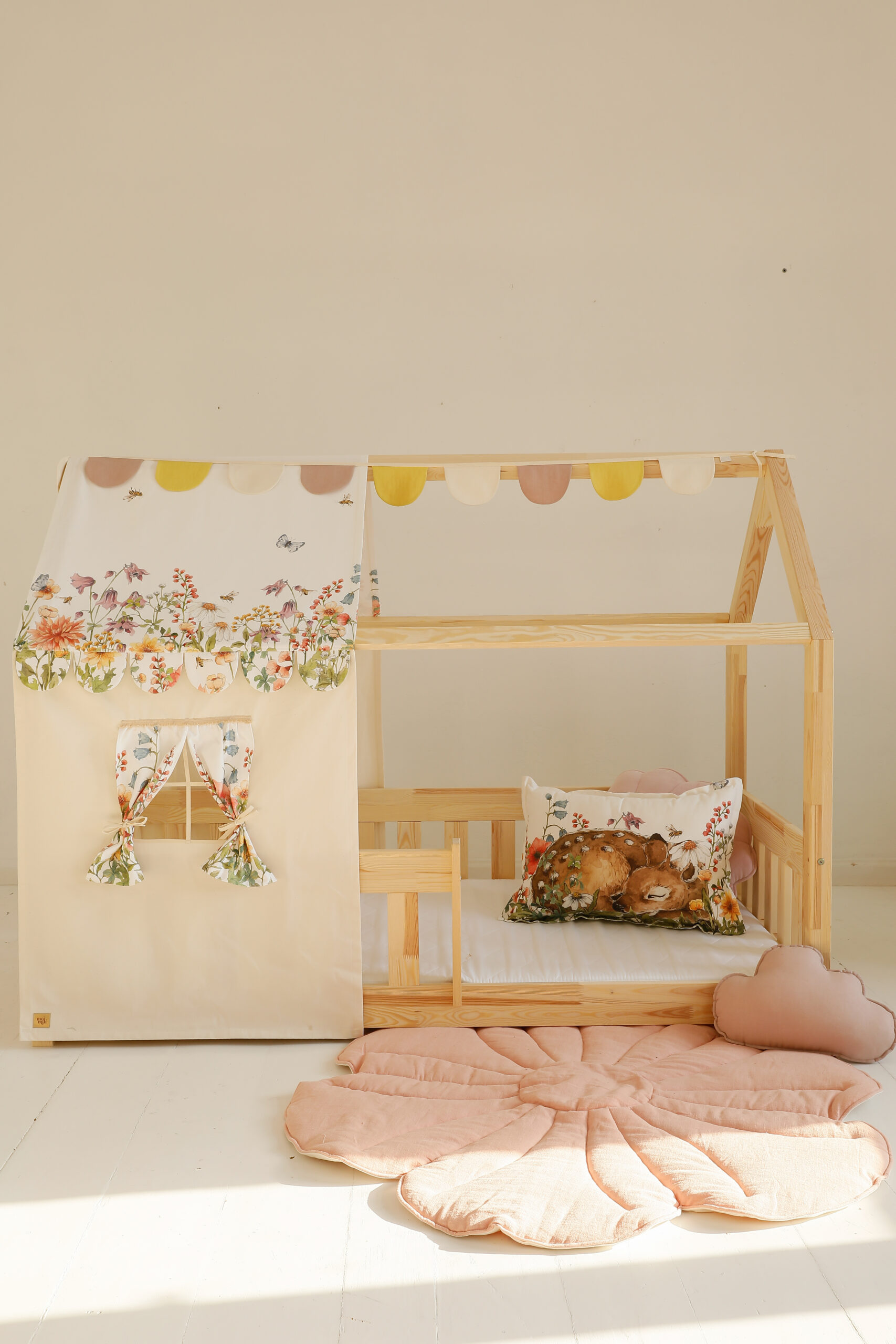 Add a touch of magic and coziness to your child’s room with our cottage bed canopy. Made in the highest quality fabrics, it provides not only a beautiful look, but also safety and comfort. It is perfect for creating a unique place to play and relax, making any bed a dream house. Perfect for toddlers who love fantasy and adventure!
