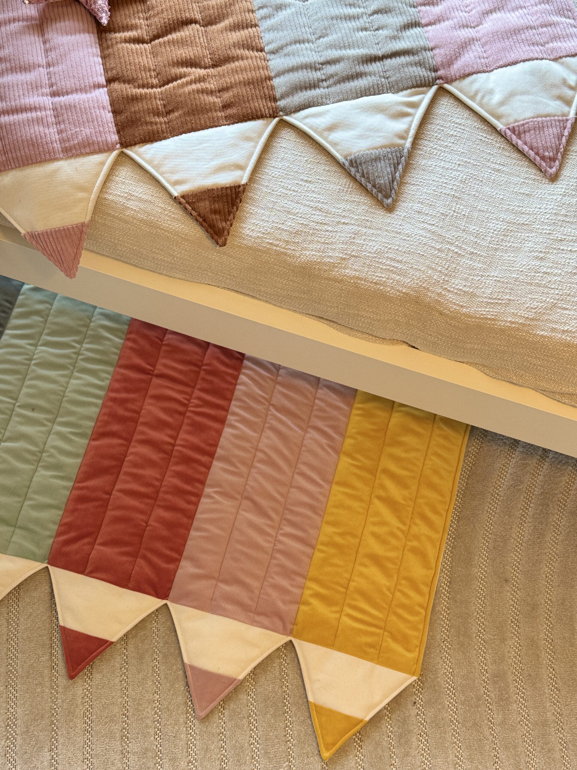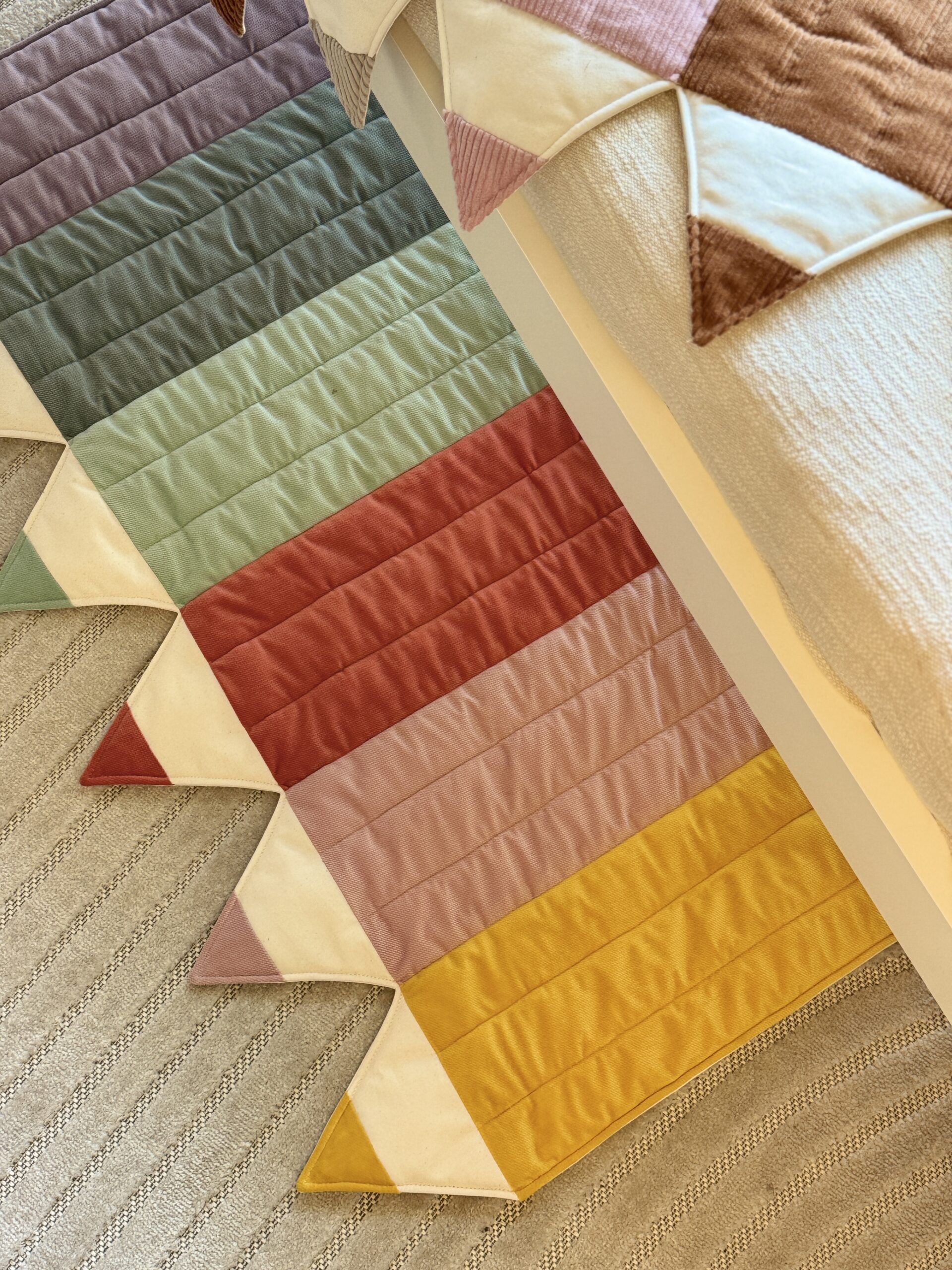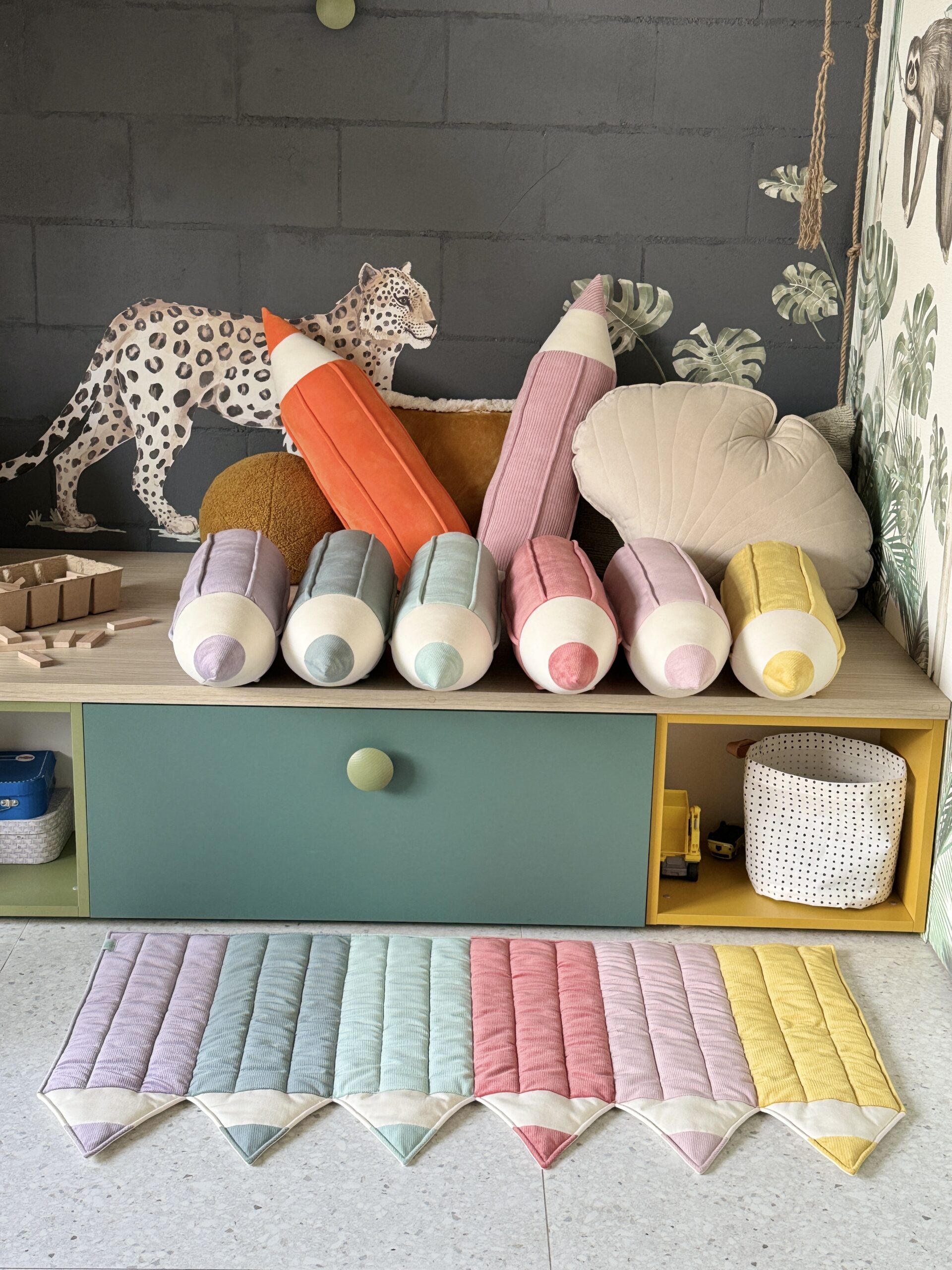 The crayon mat works as a great comfortable rug in a toddler’s room and can serve as an addition to a tent, canopy or wall decoration. It can also be used for play in the garden or at a picnic from an early age.