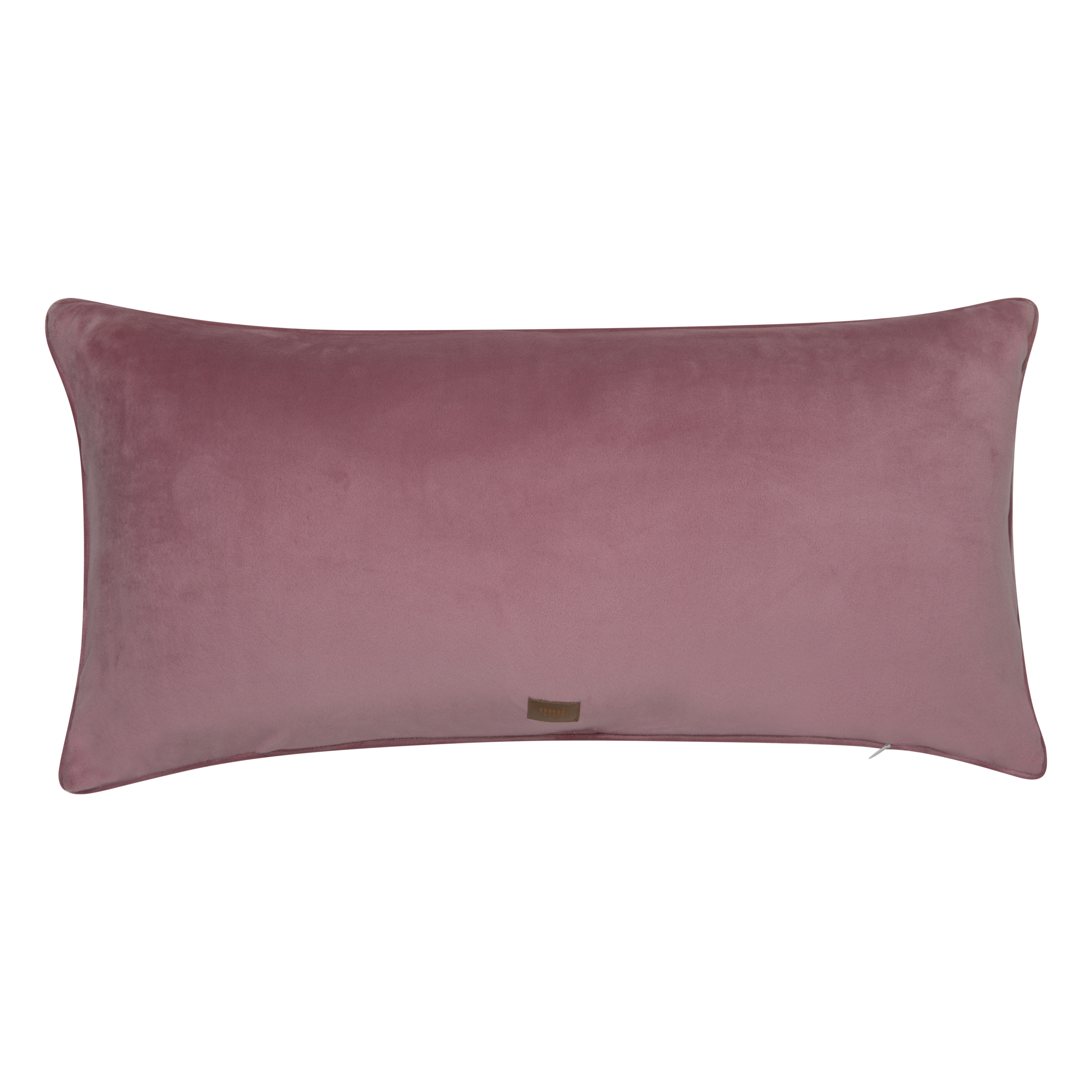 Characteristics of the decorative pillowcase with a pink embroidered text “Peace”: